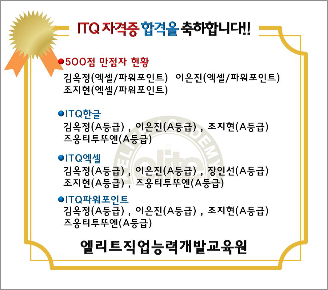 저희 엘리트 교육원에서 2과목 500점 만점자 및 전원 A등급으로 합격하였습니다.