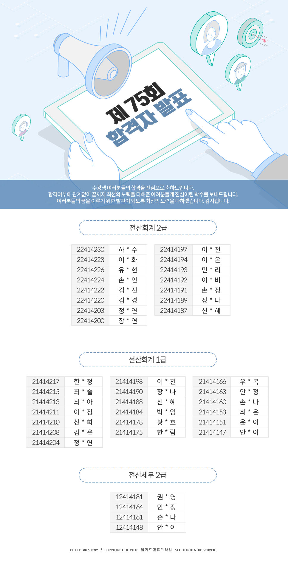 제75회 전산세무회계 자격시험 합격자 명단