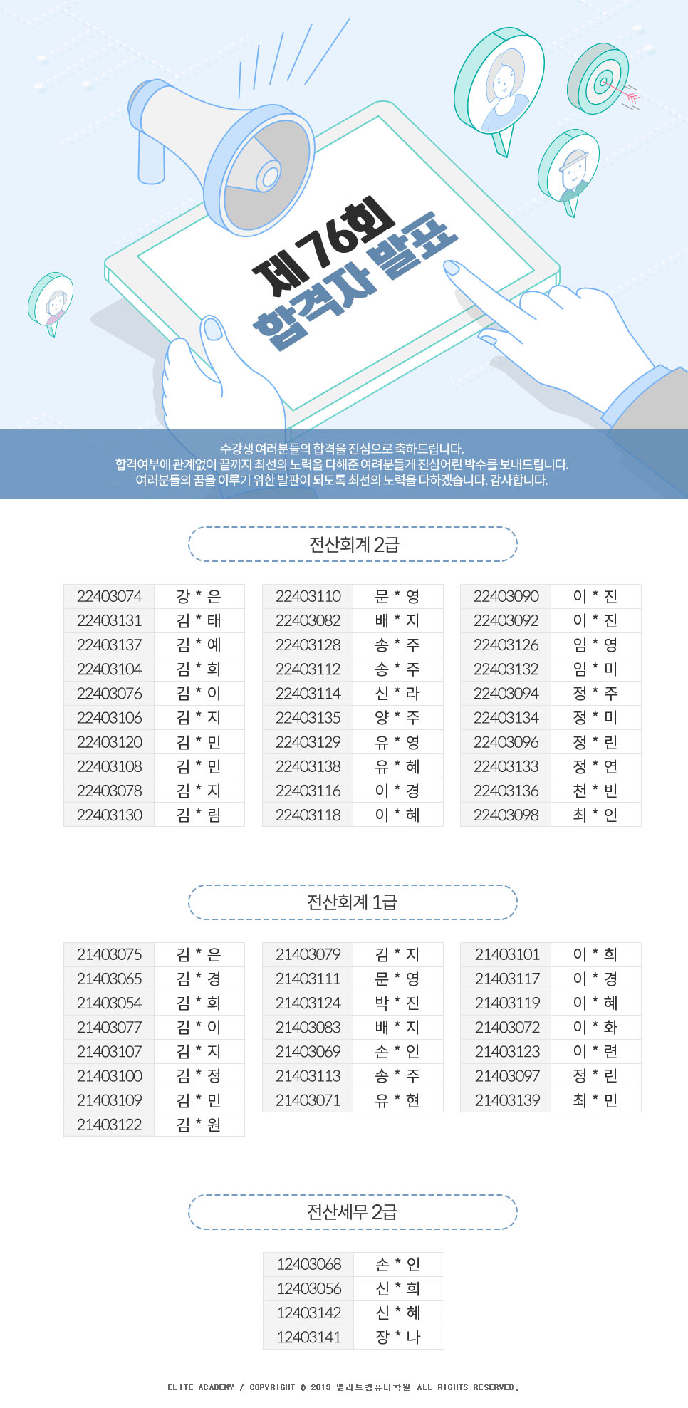 제76회 전산세무회계 자격시험 합격자 명단