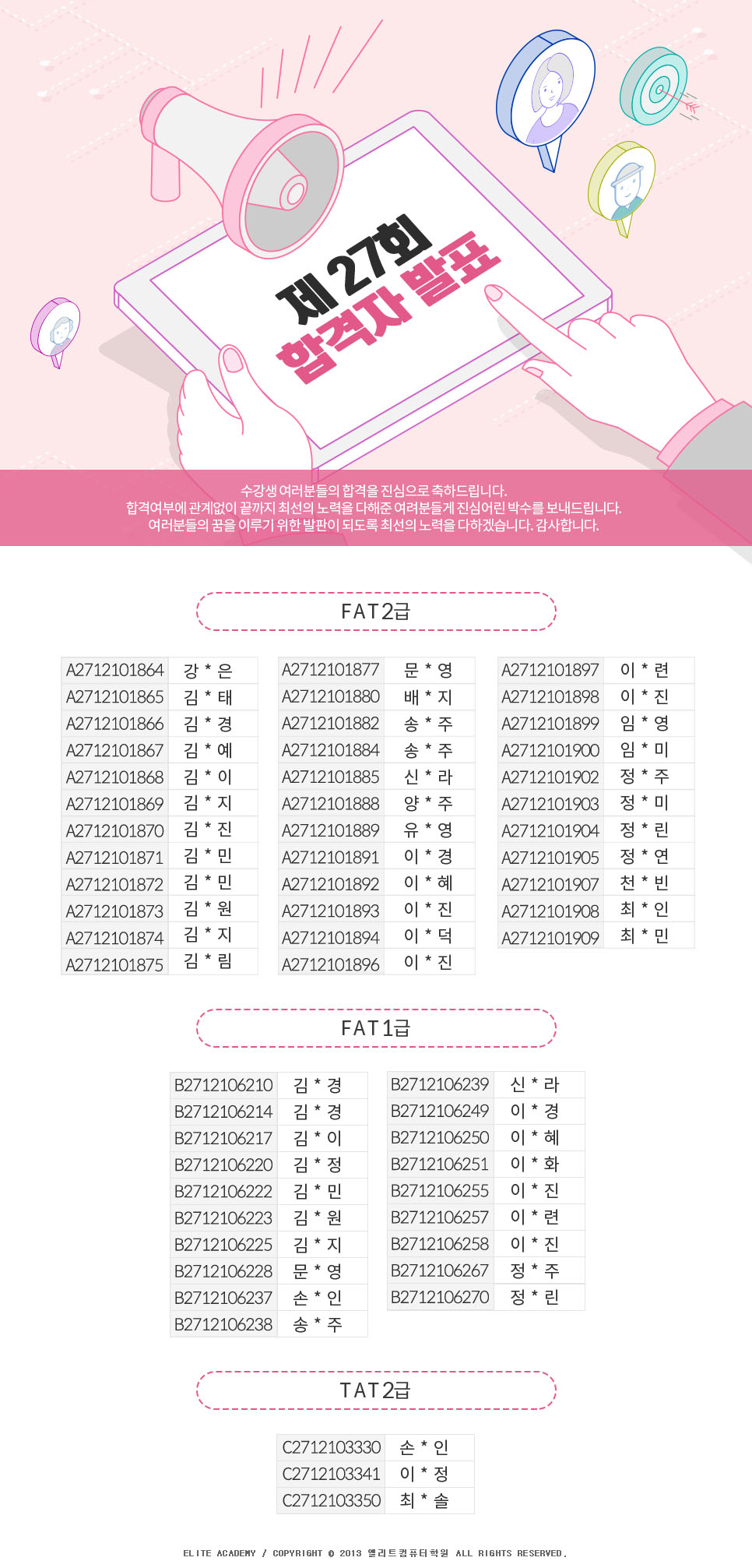 제27회 국가공인AT자격시험 합격자 명단