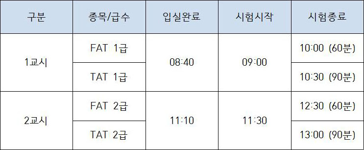 2018년도 AT자격시험 시간변경 안내 사항을 알려드리려고 해요