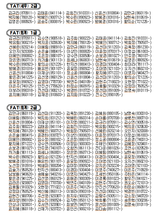 2014년 상반기 합격자 누계! (한국 공인회계사회 FAT & TAT) => 6월30일기준
