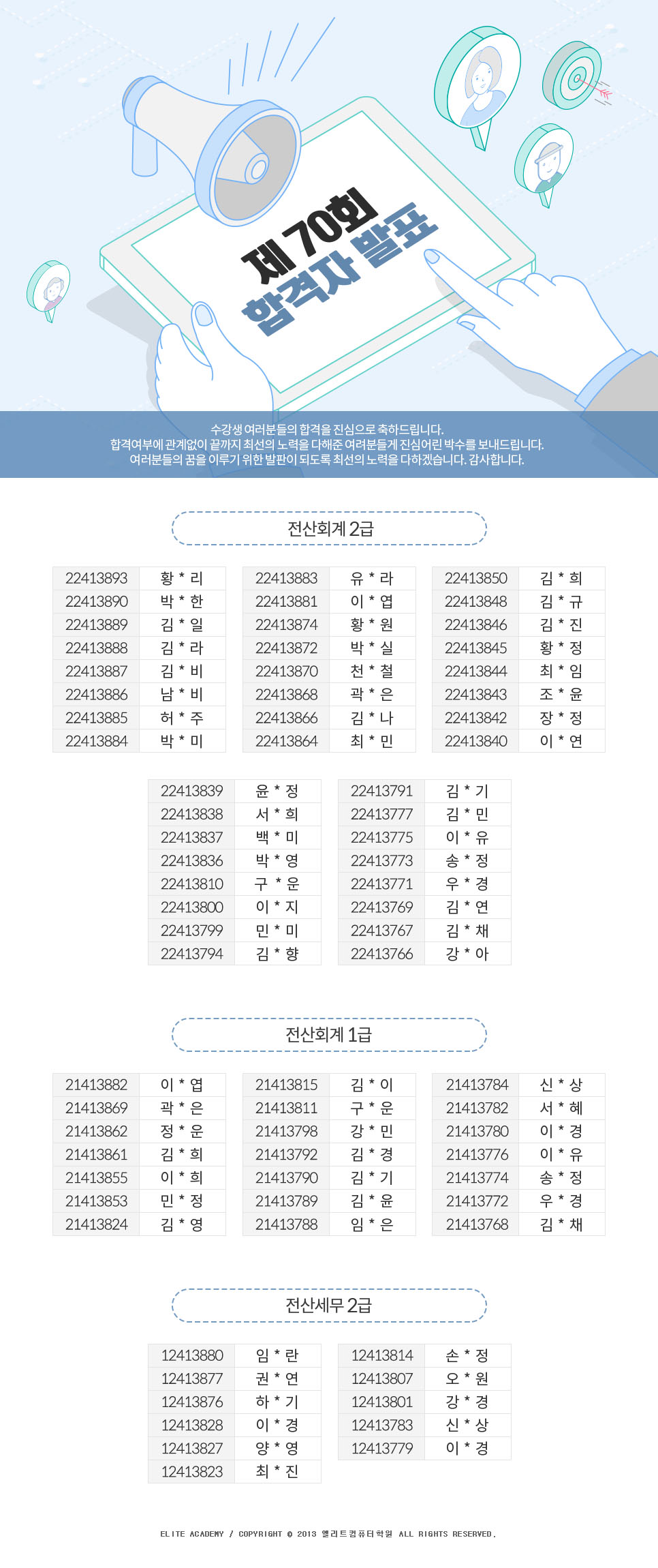 제70회 전산세무회계 자격시험 합격자 명단