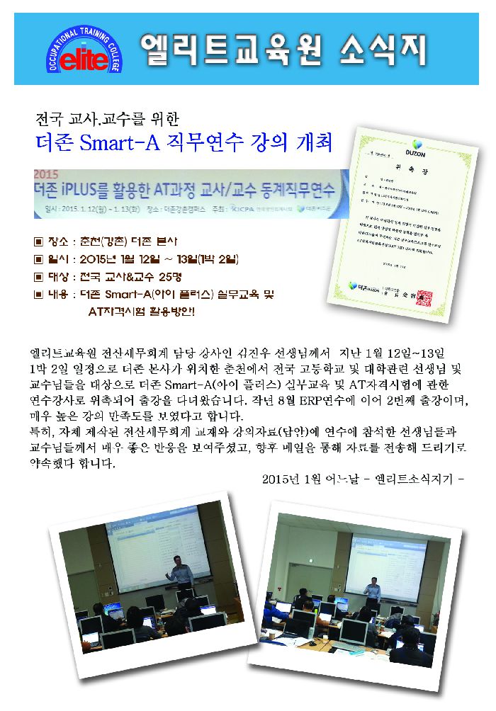 춘천소재 더존본사에서 전국 교사&교수를 대상으로 연수강의를