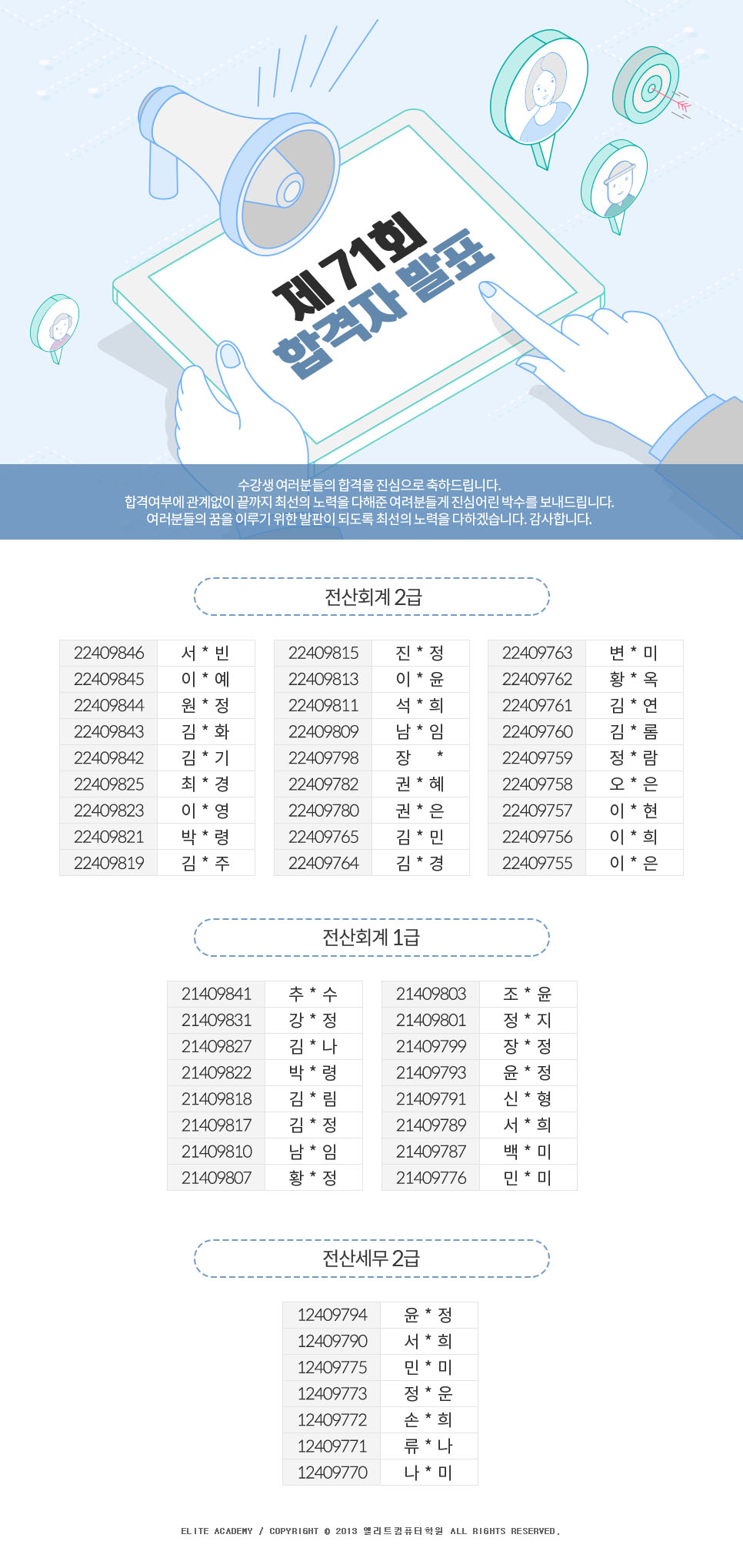 제71회 전산세무회계 자격시험 합격자 명단